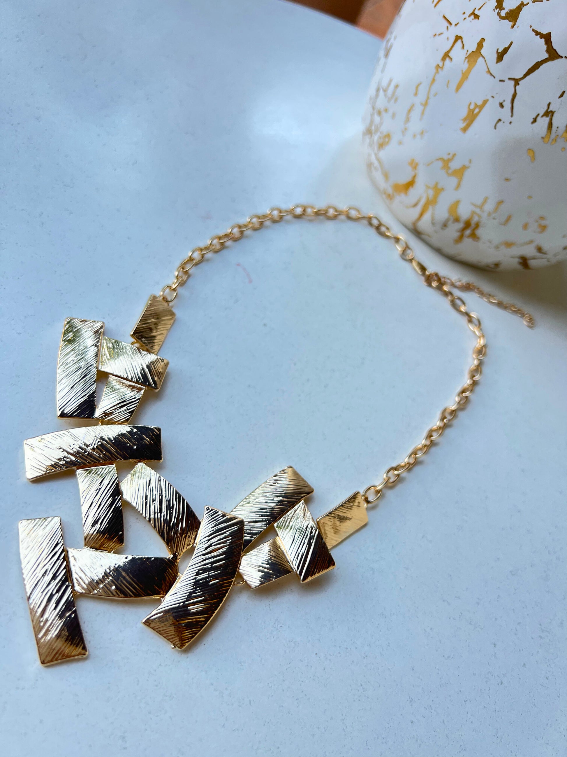Una joya que roba miradas. Su diseño geométrico con piezas doradas entrelazadas refleja fuerza, estilo y elegancia. Perfecto para destacar con tus looks de día o de noche, dándole ese toque moderno y poderoso que tanto te gusta. 💫